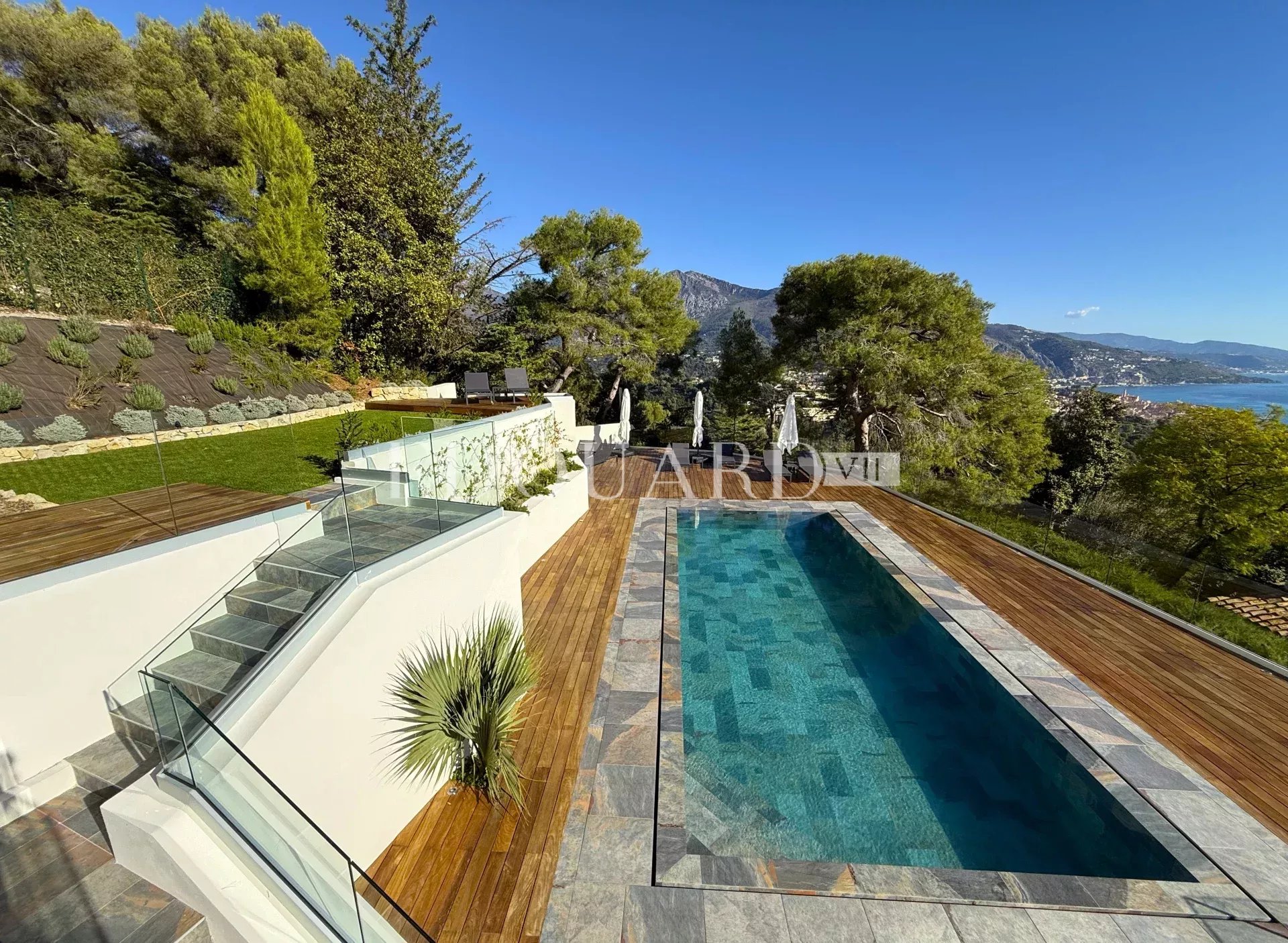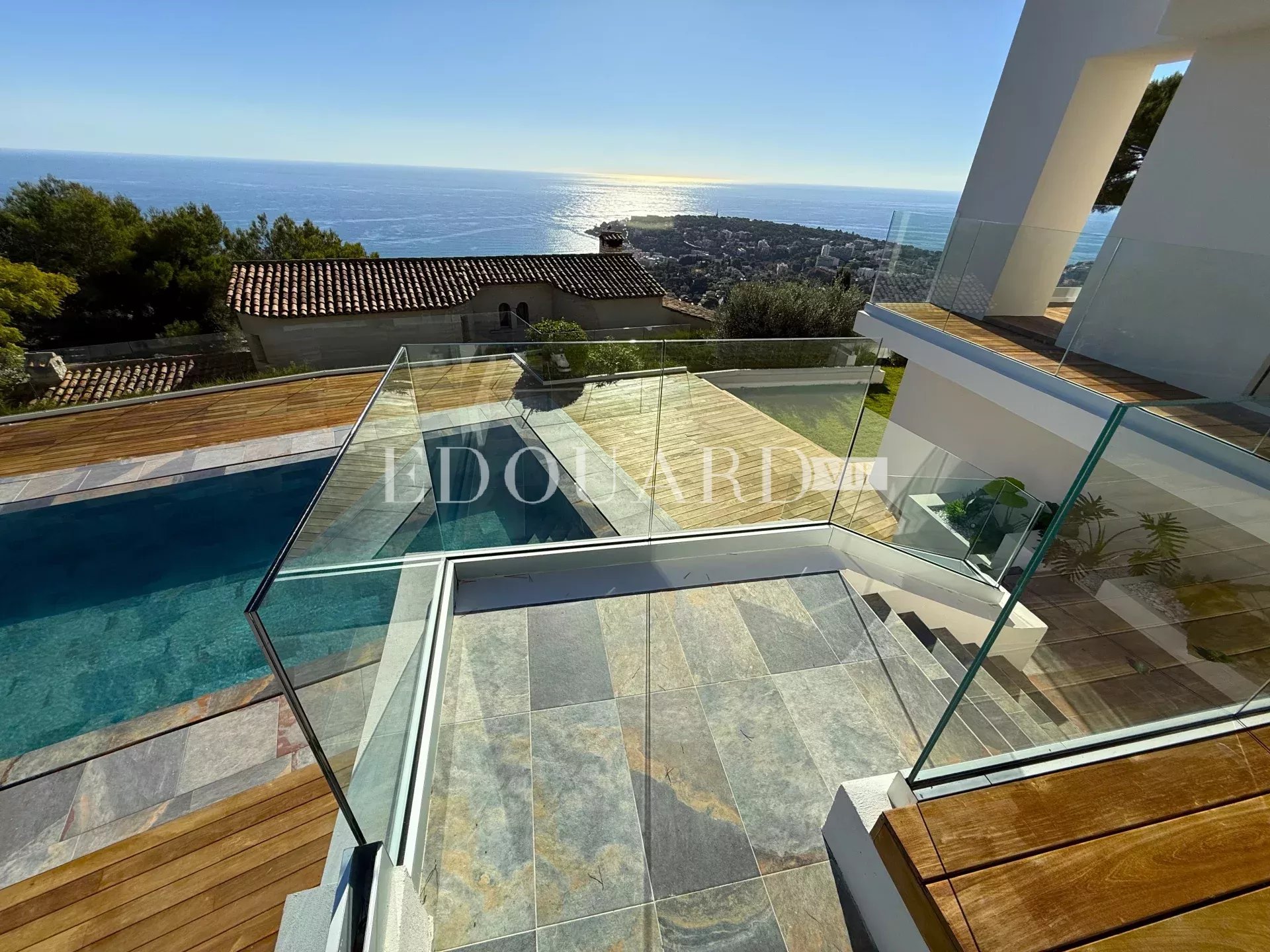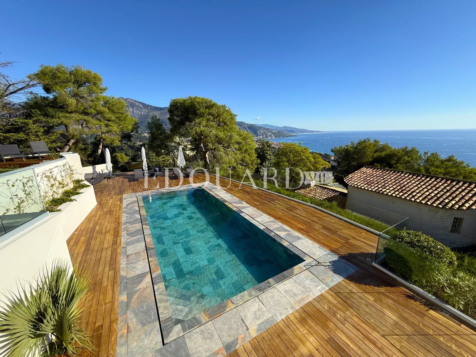 Ideally located within a private domain in the heart of the renowned Hameau district, Edouard VII real estate agency proposes for sale a 238 sqm villa completely refurbished, on a 2.020 sqm land with superb panoramic sea view and swimming pool.