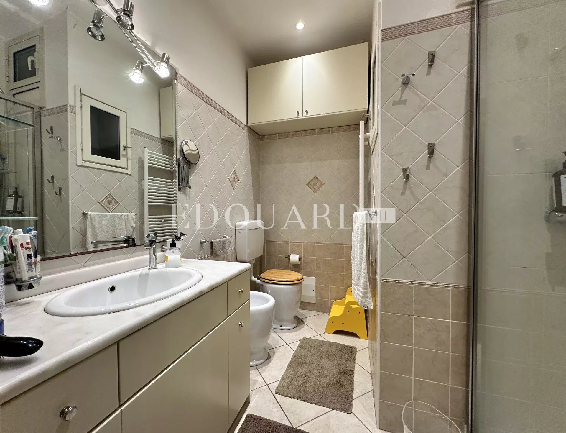 Trois pièces à vendre en plein centre de Menton, face au musée de Préhistoire Régional. Au premier et avant dernier étage d'un joli immeuble ancien sans ascenseur, l'agence immobilière Edouard VII vous propose un appartement traversant de 57 m² en très bon état avec double vitrage et climatisation réversible.